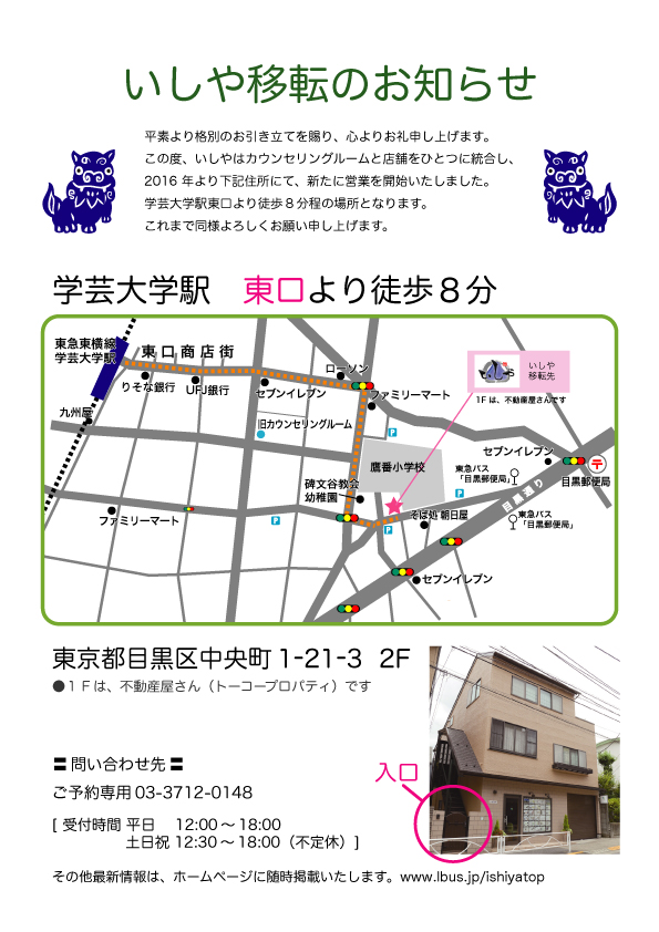 所在地:東京都目黒区中央町1-21-3 2F